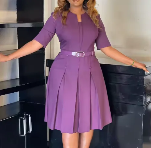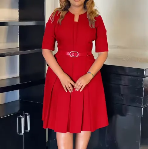 Customizable Mid-Sleeve African Dresses for Plus Size Women New Arrival Elegant Solid Color Chiffon Office Wear Casual Spring